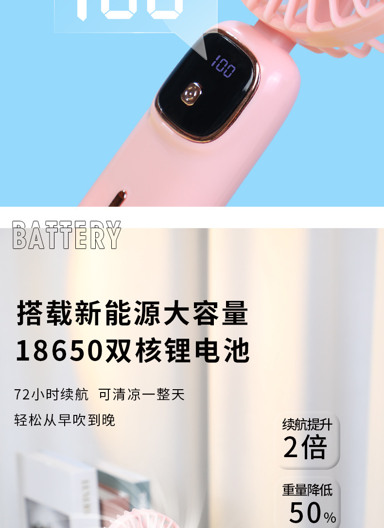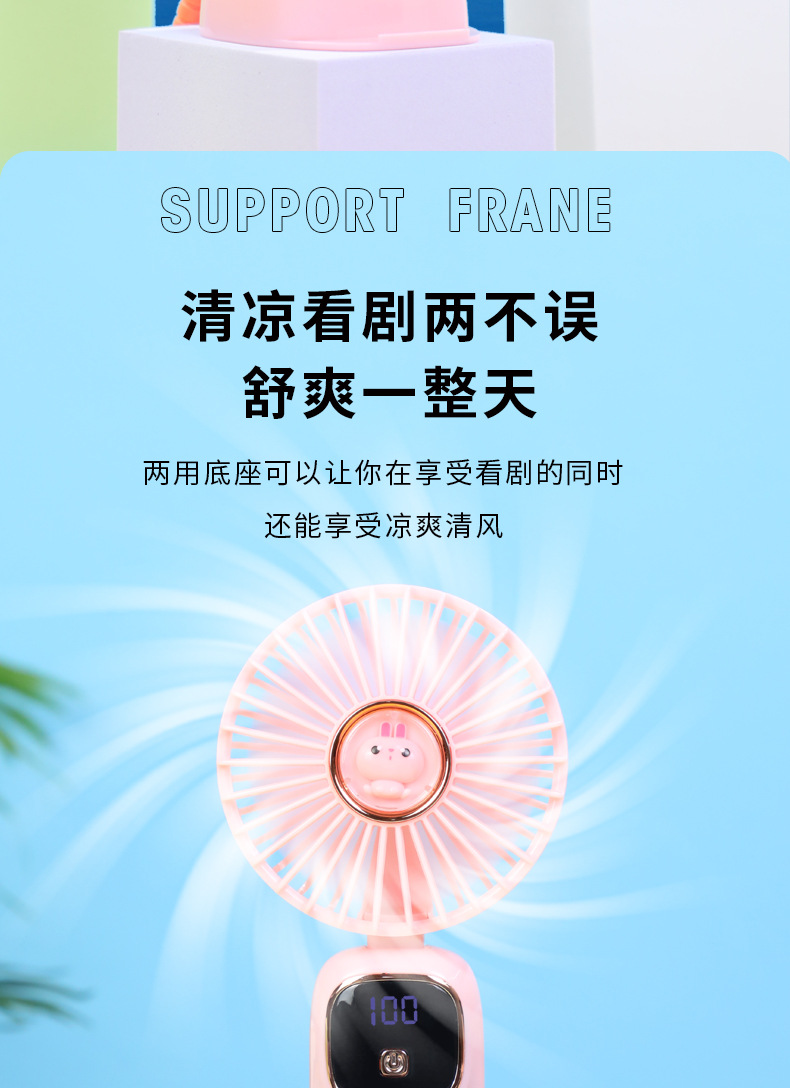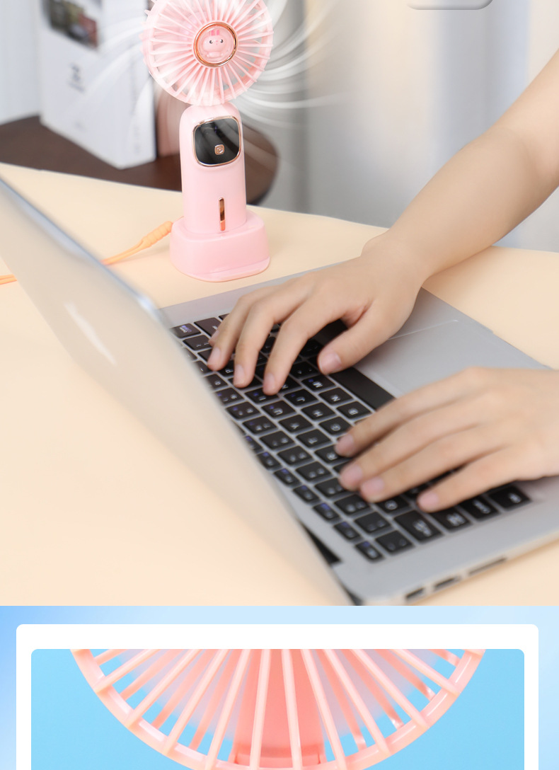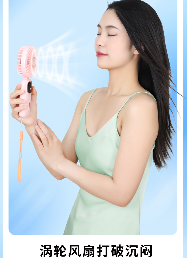 2023 New Display Folding Large Wind Long Life Rechargeable Student Portable Handheld Quiet Small Fan