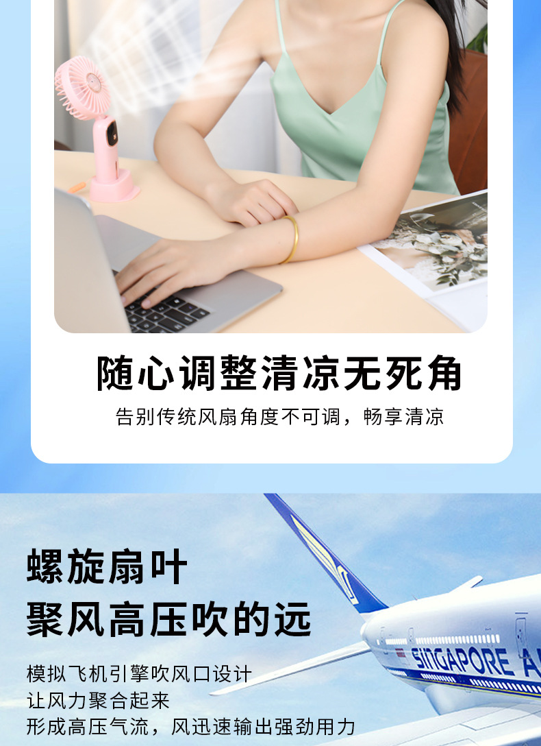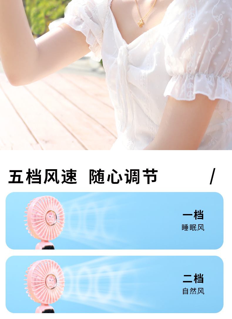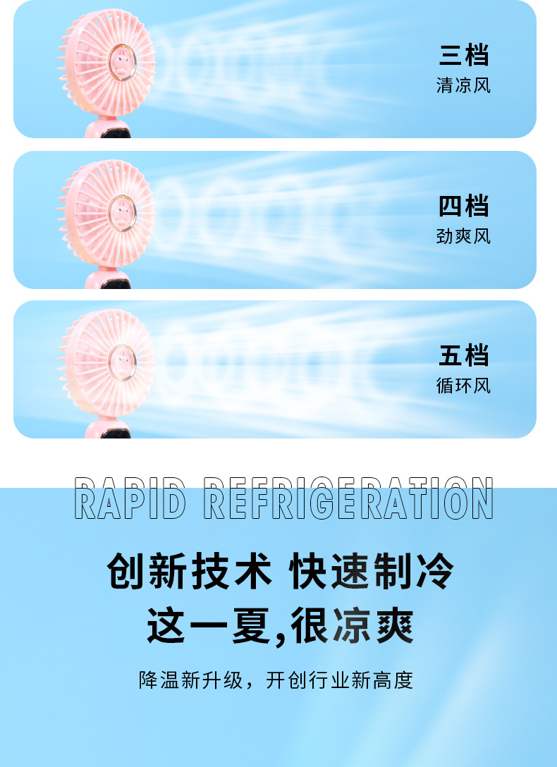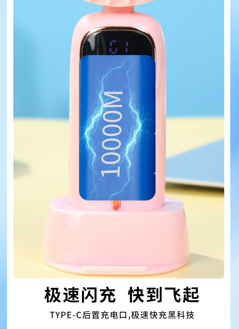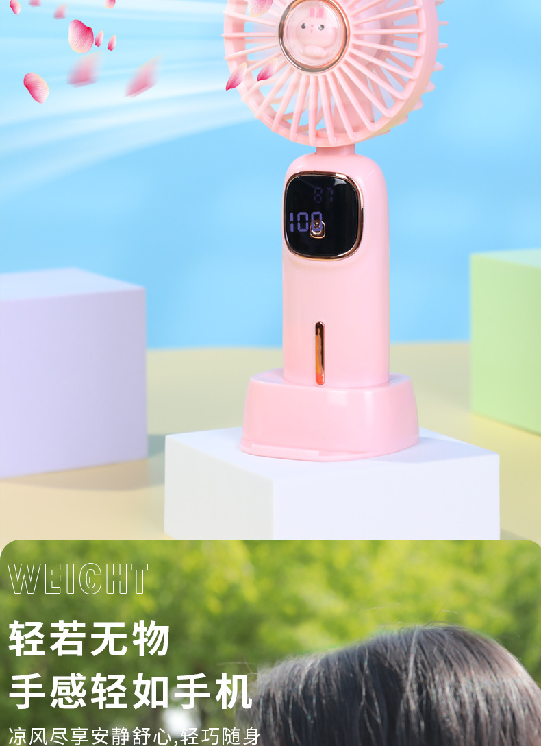 2023 New Display Folding Large Wind Long Life Rechargeable Student Portable Handheld Quiet Small Fan